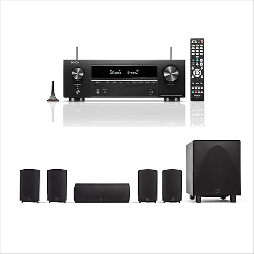 The 5.1 speaker home theater bundle above includes a pair of Klipsch Reference Series floor standing front left and right speakers, a matching center channel speaker, bookshelf rear speakers, a 12 iNCH powered sub, and a Denon 5.2-channel AV receiver. Packaged and shipped in six boxes.